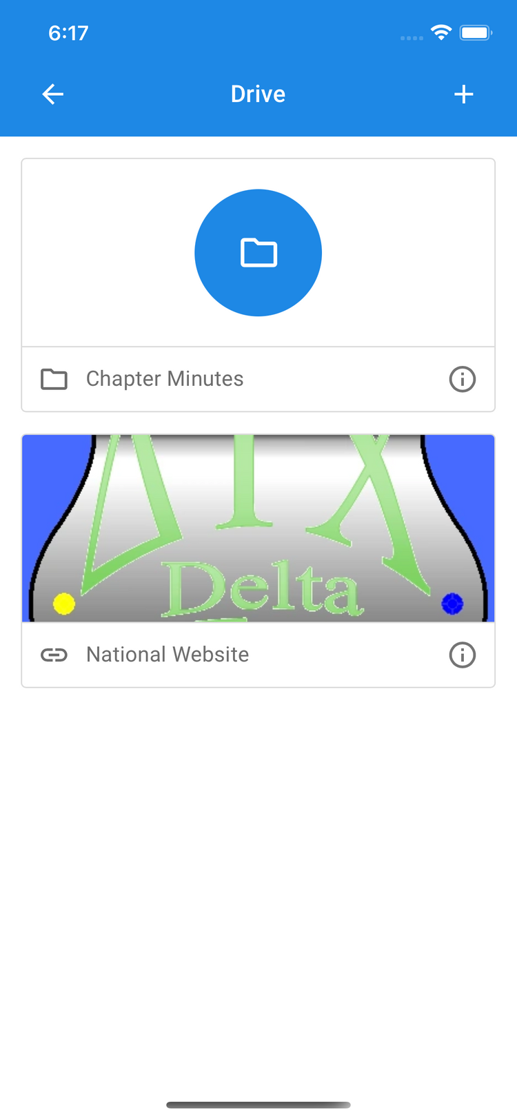 Officers & members can share files, links, and folders with the chapter from their phone or computer. Folders allow for easy organization of the range of drive items that the chapter has shared.
