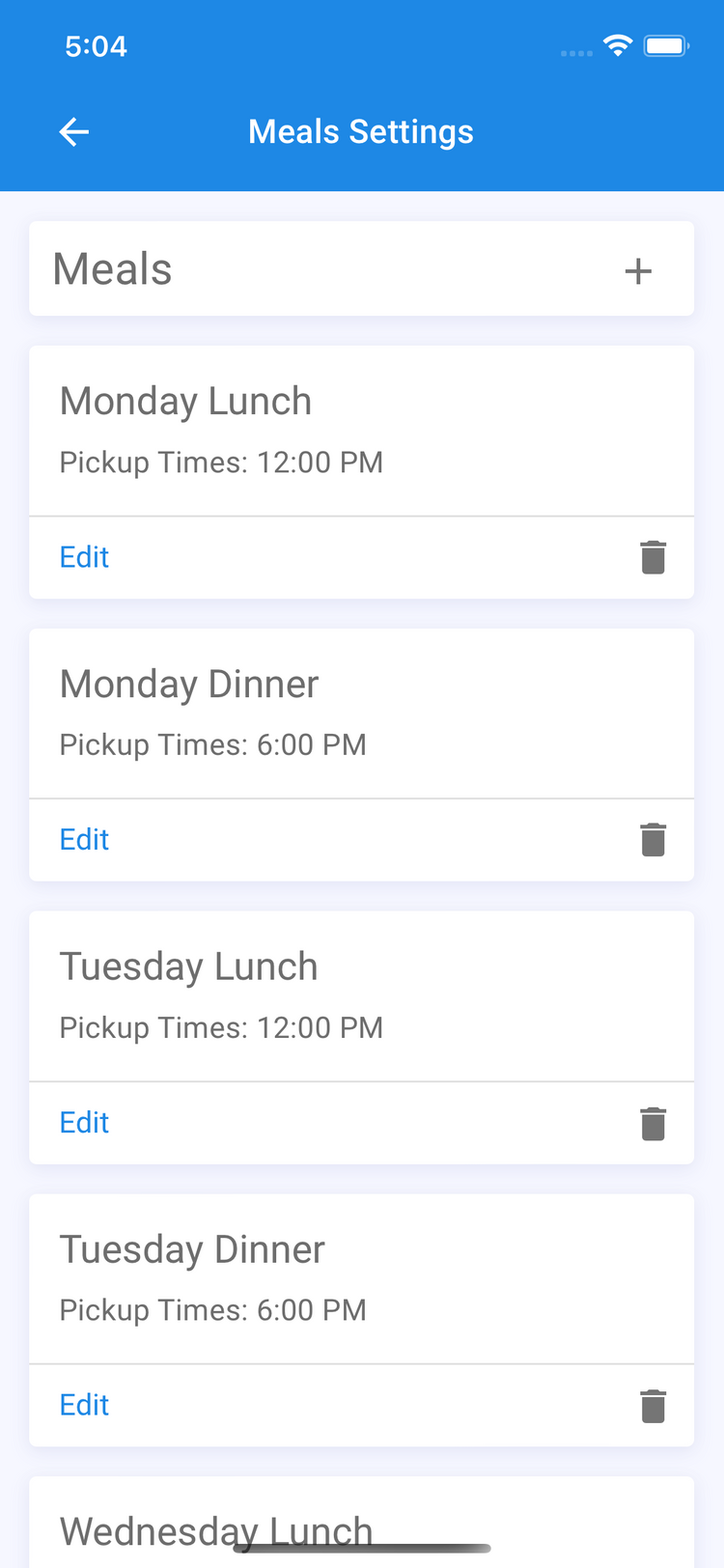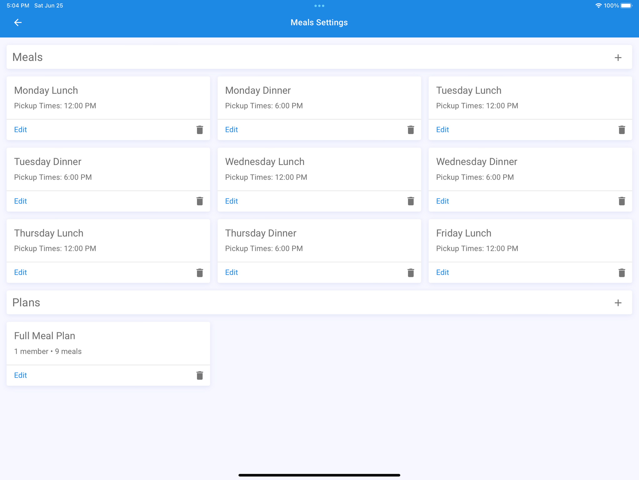 Officers can add the meals for the week, including the request deadline and pickup times. Also, officers can place members into different meal plans, so that members can only request late plates for the meals that they have access to.