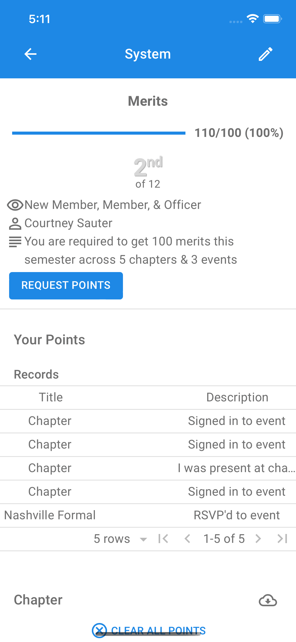 From service hours to academic merits, chapter officers can stay on top of point requirements, allowing members to submit point requests or automatically earn points based on their attendance at events.