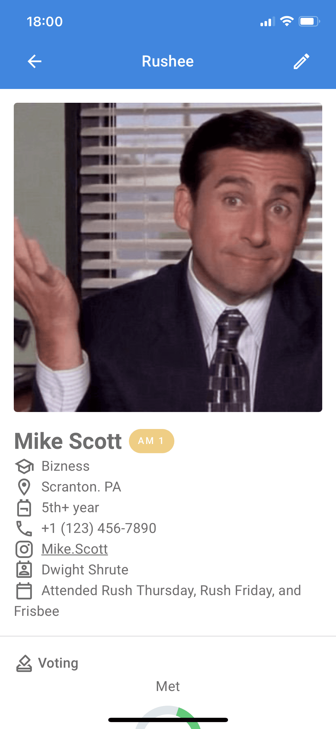 Easily manage informal rush by organizing potential new members, leaving comments, and rating them - all from within the app. Add profile pictures, social media handles, and details about events rushees have attended, to make recruitment more efficient and effective.